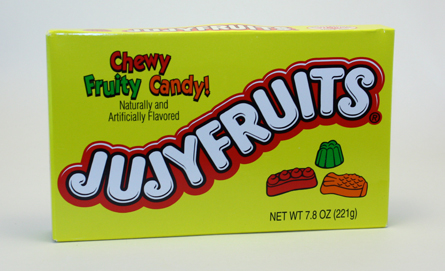 it's actually the old-style gummy type box candy JUJUBES (usually associated with movie theraters) which are much tougher to chew than its sister brand the JUJYFRUITS that have a softer bite, more like Swedish Fish